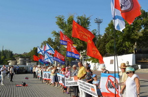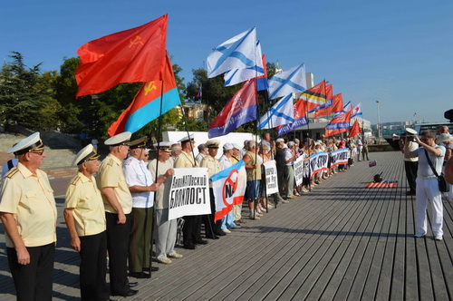 Сегодня, 29 августа, в день запланированного ВМС США и Великобритании удара крылатыми ракетами по Сирии, в порт города-героя Севастополя зашли три НАТОвских военных корабля под флагами Германии и Турции. Активисты Прогрессивной социалистической партии Наталии Витренко, Союзного движения "17 МАРТА", ОО "Дети войны Севастополя", партии "Киевская Русь" и Союза советских офицеров встретили военные корабли НАТОвских агрессоров с презрением и ненавистью. К пикетчикам присоединились представители "Российской общины", "Русского единства", "Русской общины", Союза рабочих Севастополя, КПУ и неравнодушные севастопольцы.
