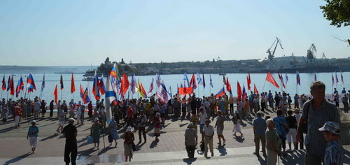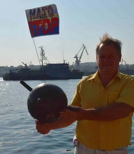 Пикетчики во время захода вражеских кораблей скандировали: "НАТО стоп!" "Турки!НАТО!Go home!" "Мы - не янки, мы – славяне! Наши братья – россияне!" "НАТО нет, Россия да!" Собравшиеся с ненавистью топтали флаг мирового жандарма – США и угрожали нашей антиНАТОвской миной воякам на кораблях. На ступенях Графской пристани пикетчики развернули огромный Андреевский флаг. Несколько смельчаков в тельняшках ринулись в воду, преграждая заход вражеских кораблей.