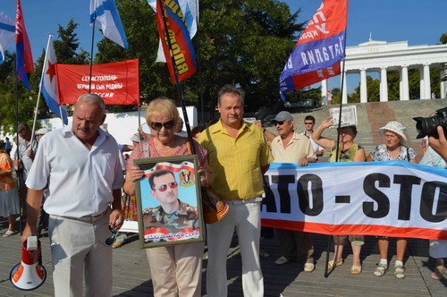 Выступившие на пикете депутат Севастопольского городского Совета, секретарь Севастопольской городской организации ПСПУ Евгений Дубовик, председатель Союзного движения "17 МАРТА" Алексей Меркулов и руководитель ОО "Дети войны Севастополя" Анна Цысарь обвинили сегодняшнюю марионеточную проамериканскую антинародную власть Украины в пособничестве кровавым агрессорам, призвали народ нашей страны к сплочению и отстранению этой власти путем акций народного неповиновения. Призвали к пикетированию посольства США и выдавливанию с территории Украины институтов кровавого агрессора НАТО и их агентов в лице Партии регионов и оранжево–коричневой хунты ("Свобода", "Батькивщина", "Удар")