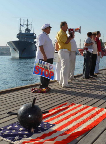 Президент Янукович, главнокомандующий вооруженными силами Украины, в очередной раз запустил в порт русской славы корабли НАТОвских агрессоров. Он и его Партия регионов присоединились к оранжево–коричневой украинской оппозиции в проведении антироссийской внешней политики. НАТОвские корабли оскорбили чувства всех севастопольцев.