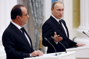 Два с половиной часа за закрытыми дверями провели во время переговоров в Кремле президенты России и Франции. Во время протокольной части приветствия Владимир Путин и Франсуа Олланд сказали лишь несколько общих фраз: про необходимость борьбы с ИГИЛ (террористическая организация, запрещенная в РФ) и создание единой коалиции. Но тем большим получился контраст с итоговой пресс-конференцией.