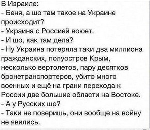 Это, согласитесь, совсем другая мотивация, о которой в Киеве надо знать всем, а не прятаться от нее за цензурными рогатками и завалами из пропагандистско-агитационного лживого мусора, извергающегося из украинских СМИ, которые кто-то уже очень удачно переиначил – "укроСМИтныки". Надо знать, хотя бы потому, что информирован, значит вооружен. Или разоружен: это уж как у кого получится...