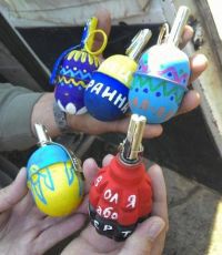 ...В пасхальные дни в Сети появилась фотография, о которой можно сказать, что лучше бы ее не было. Но она появилась и потому является свидетельством. Упоротости укурков. Или укуренности упоротых. Свидомитов с промытыми навсегда мозгами, где все, как у зомби, подчинено одной идее – ненависти к врагам, на которых укажут. Речь идет о том, что какой-то затейник покрасил как пасхальные яйца... ручные гранаты. И, судя по всему, страшно горд своим "художеством". Из пяти "яичек" безмозглого художника четыре наступательные РГД и всего одна оборонительная Ф-1.