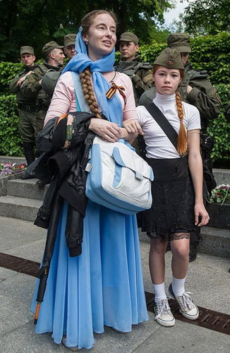 Во-вторых, еще большую подлость совершил российский бизнесмен, некто Алекс Крепчинский. Он на свои деньги, явно заработанные на «грабеже нэньки» (где же еще эти москали могут заработать?), перевез из Киева в Беларусь мать с девочкой, которых 9 мая так славно «пэрэмоглы» справжние патриоты прямо у мемориала Вечного огня. Это был справжний подвиг, который несомненно вошел. Кому в аналы, а кому и в анналы. Истории укров и ариев, разумеется. Это было поистине эпично. Хрупкая женщина с маленькой десятилетней дочерью посмели подло, нагло и совершенно по-кремлевски украсить себя в День Победы (которой, как сказал Вова Вятрович, не было) «колорадско-сепаратистскими» ленточками – георгиевскими и пошли почтить своих предков, которых почитать сегодня запрещено. И вот когда кощунство уже практически близилось к завершению во славу Путина, две хрупкие фигуры были замечены тремя десятками дебелых и «справных» патриотов. Славные патриоты, как орлы или коршуны, смело, отважно и совершенно безбоязненно, как и годится для «захысныкив Витчызны» и «вэтэранив АТО», набросились на мать с дочерью. И так славно покуражились, мстя им за чуть было не поруганную «УУ», что любо-дорого было глядеть. Они и за головы этих презренных «самок колорадов» крутили, и за руки хватали, и к земле гнули. И таки «пэрэмоглы» – вырвали с мясом из одежды «символы оккупации» и заставили маму с дочкой испугаться и заплакать. Это было феерично! Ведь мир рукоплескал «хероям!»