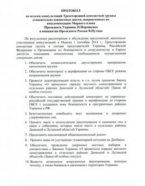 Не менее четки и предложения Путина, озвученные им в Монголии 3 сентября 2014 года. Через два дня они и отразились в минском протоколе: