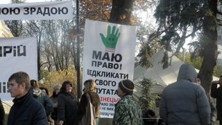 - Мы будем бороться с циничной властью, которая оказалась еще хуже, чем власть Януковича», - гневно сообщил Ляшко, после чего призвал собравшихся пройтись в Аскольдов переулок под СИЗО, куда плавно и перетек митинг как «укропов», так и людей, недовольных жилищно- коммунальными тарифами, слившихся в едином порыве.