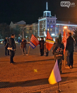 В это же время и в этом же месте сторонники преступного втягивания Украины в Евросодом проводили так называемый "евромайдан", специально для новостей на 5-м канале. В таком "майдане" приняли участие "смотрящие" от четырех оранжевых и одной коричневой политических партий, которые привели на площадь подростков и студенческую молодежь, не объяснив им сути событий и видимо специально для массовки.