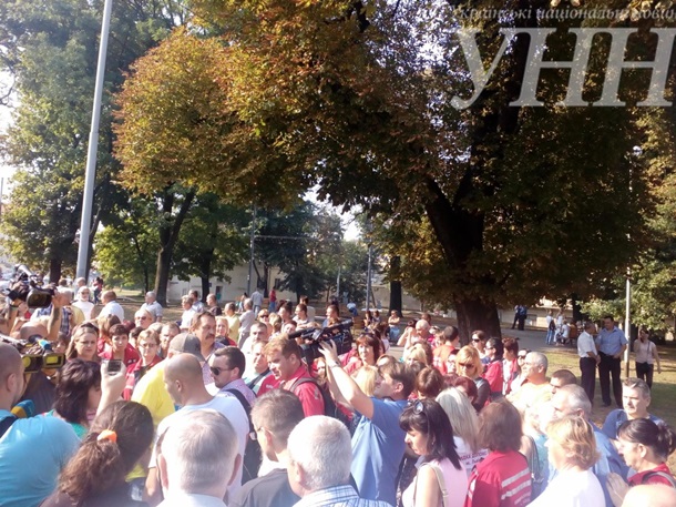 Во Львове работники медицинских учреждений устроили пеший митинг. Они вышли на улицу, чтобы показать протест против урезания зарплат и за обеспечение больниц необходимыми предметами первой необходимости.