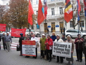 Активисты Прогрессивной социалистической партии Наталии Витренко, Союзного движения "17 МАРТА", общественной организации "Дети войны Севастополя", партии "Киевская Русь" выразили гневный протест в связи со сложившейся ситуацией в стране и Севастополе, в частности.