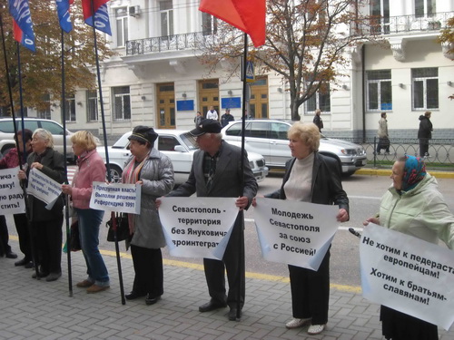 Требования пикетчиков "Януковича - в отставку! Украину - в Таможенный союз", "Преступная власть, выполни решения Референдума 1991 года!", "Если Украина в ЕС – Севастополь в Россию" отражают позицию большинства севастопольцев.