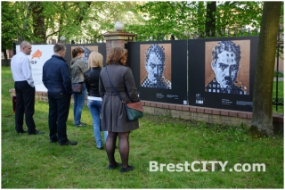 При этом, выставка находится перед входом в Парк культуры и отдыха имени 1 мая. Как раз в десяти метрах от братской могилы советским воинам, павшим при освобождении Бреста от гитлеровцев.