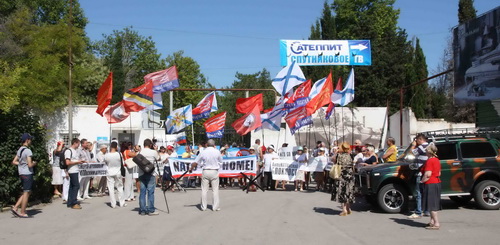 Организаторами пикета выступили Прогрессивная социалистическая партия Наталии Витренко и Севастопольский "Фронт против НАТО".
