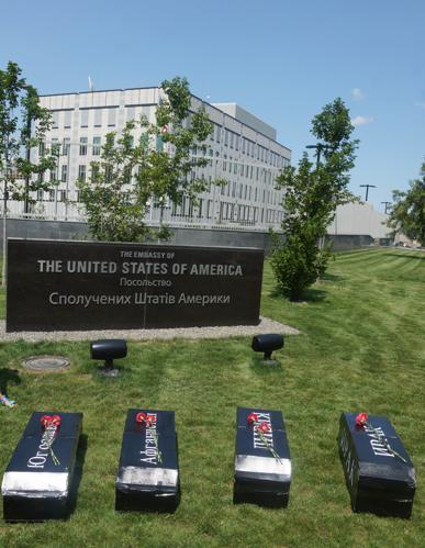 9 июля, в день рождения президента Украины Януковича, Прогрессивная социалистическая партия Украины вместе с Партией "Киевская Русь" и Рабочей партией Украины в Киеве у стен американского посольства провели акцию протеста против оккупационной политики США на Украине. К стеле посольства США были принесены символические гробы в память о безневинных жертвах НАТОвской агрессии в Югославии, Афганистане, Ираке, Ливии.