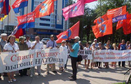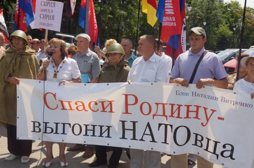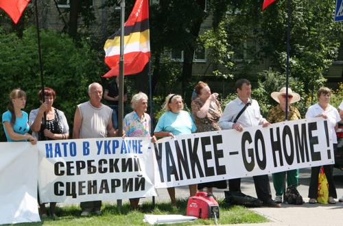 "Вставай, страна огромная!" В Киеве витренковцы "поздравили" Януковича антиНАТОвской акцией у стен посольства США (см.ВИДЕО)