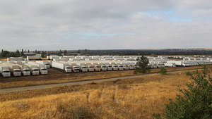 Около 120–150 грузовых автомобилей с гуманитарной помощью жителям востока Украины расположились в базовом лагере, который находится в Ростовской области примерно в 35 км от российского города Донецка. Именно там в середине августа дожидался отправки в Луганск первый гуманитарный конвой.