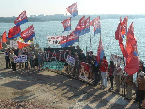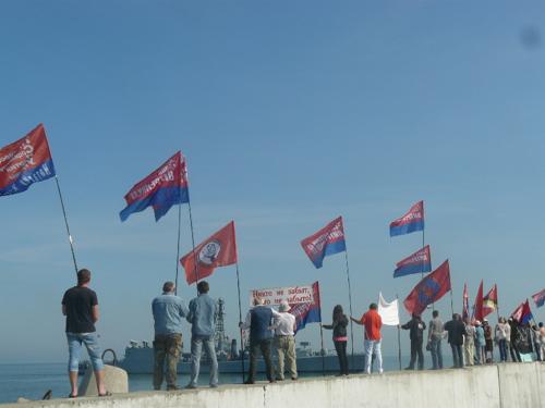 Витренковцы встретили НАТОвский фрегат громкими лозунгами: "Нет НАТО в Украине! Нет Украины в НАТО!", "НАТО - НЕТ!", "NATO - GO HOME!", тем самым, показывая однозначное отношение большинства севастопольцев к Североатлантическому альянсу и к тем, кто втягивает Украину в НАТО!