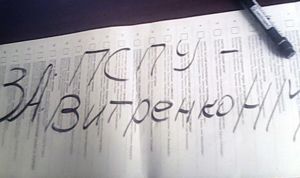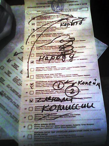 И поскольку среди олигархическо-цветного политического сброда нет в принципе партий рассматривающих развитие нашей страны, интегрированной с Россией, Беларусью и Казахстаном в рамках Таможенного союза и Единого экономического пространства, прогрессивные социалисты г.Славянска и их сторонники приняли решение идти на "выборы", и высказать своё отношение к ним в письменной форме на избирательном бюллетене.