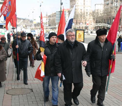 Кроме активистов ПСПУ и "Киевской Руси" в митинге приняли участие представители Международного Союза Советских офицеров во главе с лидером украинской организации этого общественного движения Виктором Ивановым.