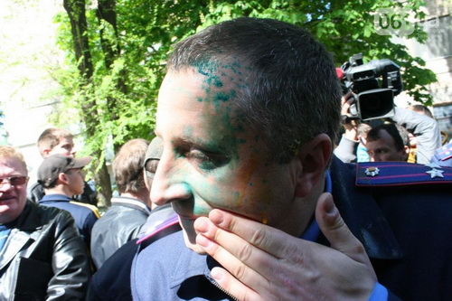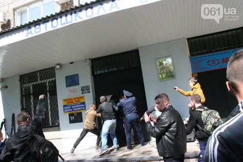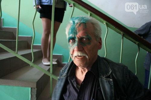 Политик был вынужден скрываться в здании около 40 минут. Пока нацисты разыскивали Волгу в здании, досталось также лидеру движения «Социальное Запорожье» Ивану Кузьменко - его побили и облили зеленкой.