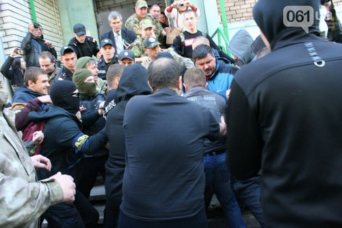 Боевики -нацисты собрались перед входом в здание. Сначала они предложили Волге отменить пресс-конференцию, но тот отказался. После этого началась потасовка, и Волга скрылся в помещении ДОСААФ.