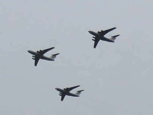Однако к этому моменту движение по площади Нахимова было полностью перекрыто (как потом выяснилось в связи с приездом президента), что вызвало сильный затор из-за постоянно прибывающих людей. Естественно, из-за такого скопления граждан не было никакой возможности не то что лично увидеть выступление Путина, но и выйти в обратном направлении. Говоря медицинским языком, образовался большой "тромб". Однако скоро движение было восстановлено, и все желающие смогли покинуть площадь. Что было очень кстати, поскольку многим предстояла ещё дорога домой. А те, кто не очень спешил, смогли порадовать себя концертом и праздничным салютом, кроме того, позднее пилотажные группы ещё раз продемонстрировали своё высочайшее искусство управления своими крылатыми машинами...
