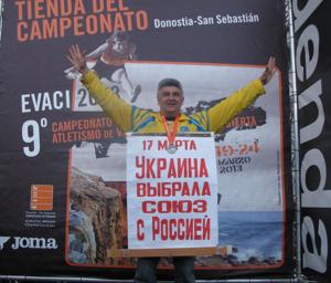 Сергей Гаврась поднялся на пьедестал почета, как и обещал, с плакатом "17 марта Украина выбрала союз с Россией". Из Испании вся Европа увидела и узнала, что союз с Россией, а не евроинтеграция, - выбор народа Украины.