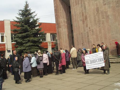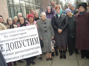Так было и на это раз! Когда закончилась сессия поссовета, Владыка Евлогий обратился к прихожанам с хорошей вестью! Победа сегодня за православными! Сегодня нам всем есть о чем доложить Богу! День прожит не напрасно! Большая заслуга принадлежит простым людям! Также Владыка рассказал о трудностях переговоров с депутатским корпусом, которые имели место накануне, буквально вчера – и как поразительно изменился тон переговоров после митинга под окнами поссовета! Вместе мы – сила, которая горы готова свернуть! Женщины из "Собора православных женщин Украины" стояли на митинге с таким лозунгом: "На территории канонического православия не допустим появление раскольнических религиозных организаций!"