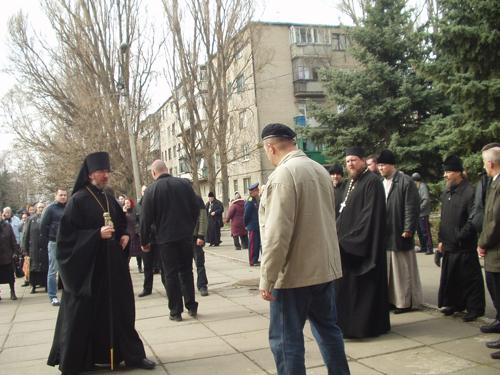 Никто не ушел домой, а к 14.30 к зданию поссовета приехали прихожане из храмов, находящихся недалеко – из Песчанки, Соленого Лимана, Знаменовки и других сел. Также приехал Владыка Новомосковский - Евлогий.