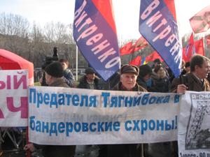 Во время бандеровского шабаша свободовцы громко скандировали лозунги "Банду геть!", и "Слава нации – смерть врагам!", а затем проломили заграждение вокруг горсовета, выбили двери в здание и попытались прорваться на сессию, после чего регионалы назначили свой "антифашистский митинг" совпадающий с акцией витренковцев.