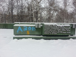 На бюсте была нарисована свастика и "вольфсангель" – символ, использовавшийся дивизией СС "Дас Райх", а также неонацистами из батальона "Азов", принимающего участие в боевых действиях на стороне киевских властей на Украине.