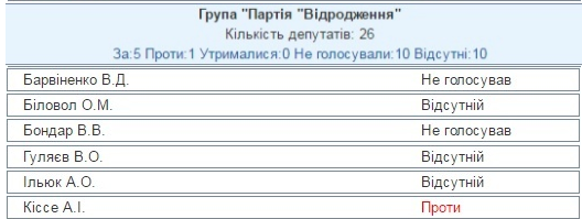 В своем подавляющем большинстве против закона «О внесении изменений в некоторые законодательные акты относительно внешнеполитического курса Украины», проголосовали депутаты из фракции Оппозиционный Блок, а также два других депутата - один депутат из фракции «Відродження» (Антон Киссе)
