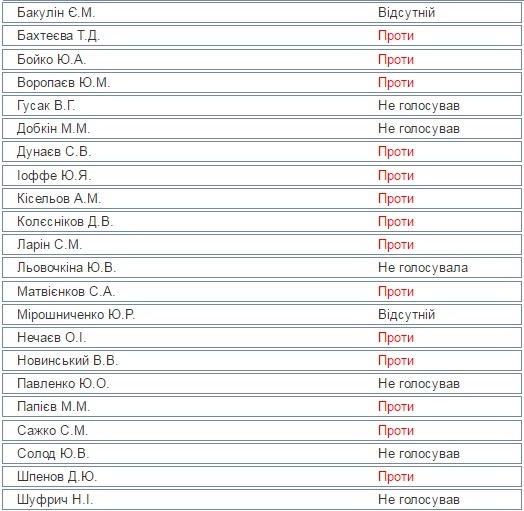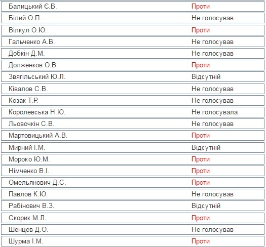 Как сообщалось за законопроект проголосовали 276 парламентария, между тем стали известна имена тех депутатов, которые выступили против данной законодательной инициативы.