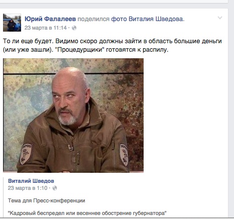 По мнению экс-руководителя Лисичанской военно-гражданской администрации Виталия Шведова, «убираются все, кто может мешать, нужны свои и доверенные, перекрываются все ключевые позиции. Господа хотят контролировать потоки и их осваивать. Но самое худшее, что это приведет к реальной беде для области. Народ готов уже и к забастовке. Это начало конца».