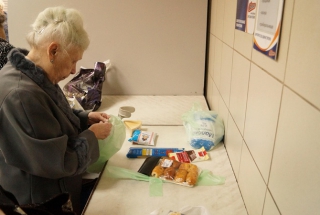 - Моя пенсия составляет 1176 гривен, за квартиру отдаю 250 гривен по субсидии и еще 500 - уходит на лекарства - у меня диабет и артроз, - рассказывает 78-летняя Алла Александровна - женщина с красиво уложенными седыми волосами. Правой рукой она опирается на костыль. - Сколько там, 400 гривен с пенсии остается? Ну, мне повезло, есть небольшой депозит, и я оттуда понемножку снимаю... Только благодаря этому могу позволить себе два раза в месяц курочку, уцененные яблоки и овощи - капусту, морковку, картошку. Помидоры и огурцы не покупаю, слишком дорого. Но живу лучше, чем многие. На неделю покупаю целых три литра молока, пачку сметаны, сыра грамм 400, если найду уцененный, конечно.