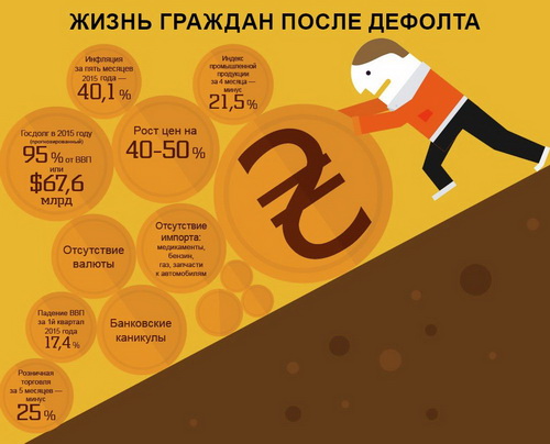 Украина на основе статистических данных развития экономики Украины показывает, как государственная система движется к дефолту. Также дается понять, какие последствия ожидают украинцев в результате.