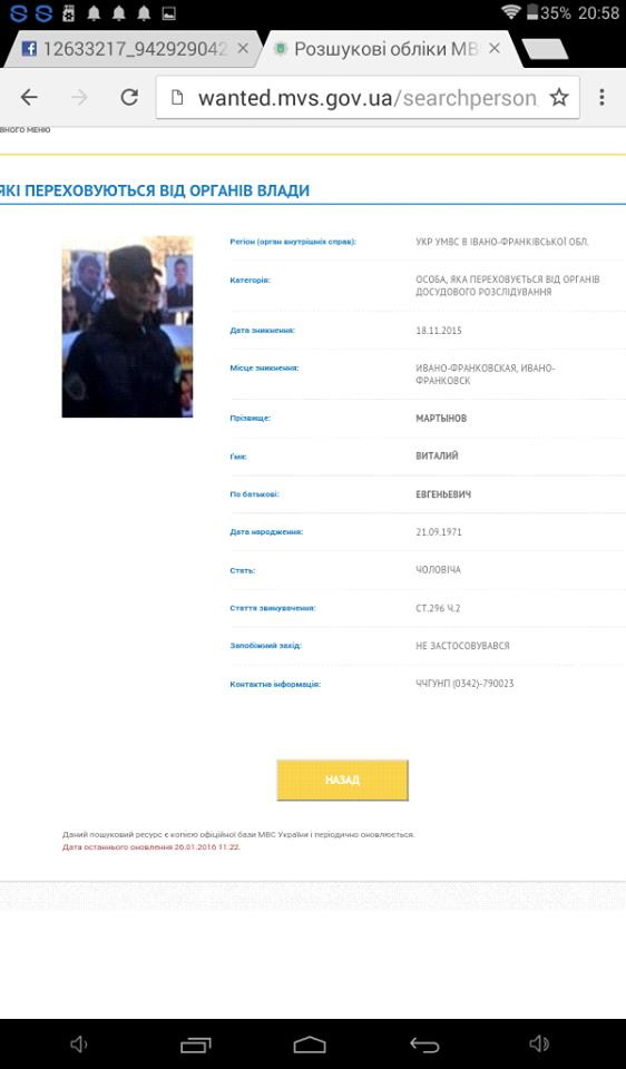 Бывшего главу Правого сектора в Прикарпатье Василия Абрамива (зятя нардепа Дмитрия Яроша) и командира четвертого запасного батальона ДУК Виталия Мартынова объявили в розыск. Об этом сообщается на странице ПС Ивано-Франковска в Facebook.
