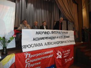 Степан Тудор, Олександр Гаврилюк, Кузьма Пелехатий, Микола Максимович, Кирило Студинський, Марія Кіх, Юрій Мельничук, Микола Павлик, Петор Козланюк, Галина Гурська, - ці та багато інших імен видатних борців за Возз"єднання широко відомі у Галицькому краї. У цьому ряду почесне місце по праву займає ім?я Ярослава Галана. Саме до його 110-річного ювілею (а народився він 27 липня 1902 р.) у цьогорічні святкові дні Возз"єднання, 18.09.2012 р., відбулася науково-літературна конференція "Ярослав Олександрович Галан – видатний український радянський письменник, полум?яний публіцист, антифашист, інтернаціоналіст". Її відкрив член ЦК, секретар Львівської організації Прогресивної соціалістичної партії України, Голова Спілки наукового соціалізму ім. І. Франка Львівщини та Львівської обласної організації "Інтелігенція за соціалізм", канд. ек. наук, Покровський О. С.. З науковим повідомленням про життя та творчість Я. О. Галана виступив Голова Антифашистського комітету Львівщини, член бюро Львівського ОК Компартії України Калинюк О. Н.. Своїми спогадами про Я. О. Галана, роздумами про високий, гуманістичний, антифашистський, антинаціоналістичний, антиклерикальний, антиуніатський зміст його прози, драматургії, публіцистики поділилися сучасники письменника: Герой Соціалістичної Праці, Почесний Голова Львівської обласної організації ветеранів, ветеран-фронтовик Великої Вітчизняної війни Махоньок Т. А., одна з керівниць жіночих організацій Львівщини Чайка Р. М., член Ради Спілки наукового соціалізму ім.. І. Франка Львівщини Найда О. І.. Активну участь у конференції прийняли Голова Львівської обласної організації партії "Київська Русь" Матрохін В. І., Герой Радянського Союзу Каліберда І. О., Голова Російського культурного центру та Організації земляцтва ленінградців у Львові "Пітер-клуб" Корчевський І. М., канд. мед. наук Оборін М. М., Передумов Г. Г., Куцин П. Г., представники журналістської громадськості та інші.