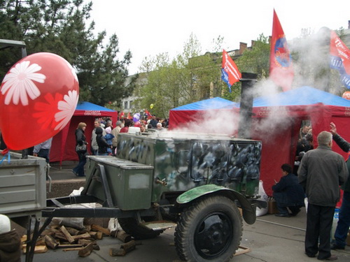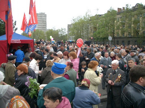 Двадцать тысяч николаевцев вышли сегодня на торжественный митинг, посвященный Дню Победы. И в рядах горожан была городская организация ПСПУ. Со знаменами Прогрессивной социалистической партии колонна партийцев прошла по улице Советской, и после завершения митинга возложила цветы к памятнику героям-ольшанцам. А в это время на центральной площади Ленина уже разворачивалась полевая кухня, под звуки любимых песен военных лет заполнялись украшенные нашими флагами палатки.После митинга горожане хлынули к нашему импровизированному лагерю.Каждый хотел отведать солдатской каши , поднять фронтовые сто грамм за здоровье наших ветеранов, услышать такие родные и любимые песни.К микрофону подходили ветераны, читали стихи, обращались к жителям Николаева с призывом не забывать героический подвиг наших отцов.В выступлениях депутатов от Блока Витренко звучали призывы не поддаваться давлению предателей, не ставить рядом святые имена защитников страны и фашистских прихвостней ОУН-УПА. Тысячи николаевцев встретили наш праздник День Победы вместе с прогрессивными социалистами Пресс-служба ПСПУ