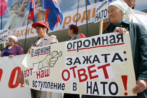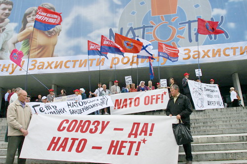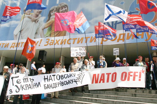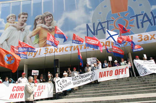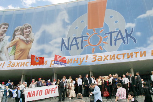 "НАТО - геть! НАТО - геть! НАТО - геть!".