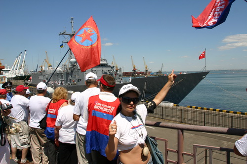 Видя столь не теплый прием одесситов, команда корабля, выстроившаяся