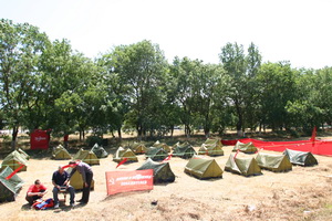 - Палаточный городок из нескольких повалившихся палаток в районе пос. Чабанка. Эту "мёртвую зону" охраняют два человека (на случай, если кто-то из отдыхающих решит пополнить свой туристический запас одноместной палаткой цвета хаки) ФОТО 1.