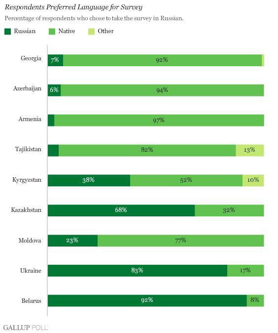 1 августа 2008 года на сайте американского Института Гэллапа были размещены результаты социологического опроса о языковых предпочтениях жителей республик бывшего Советского Союза ().