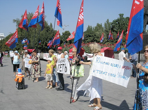 Сегодня, 29 августа 2008 года, Ющенко приехал в Донецк. Прогрессивные социалисты устроили ему на площади имени Ленина "горячую" встречу.
