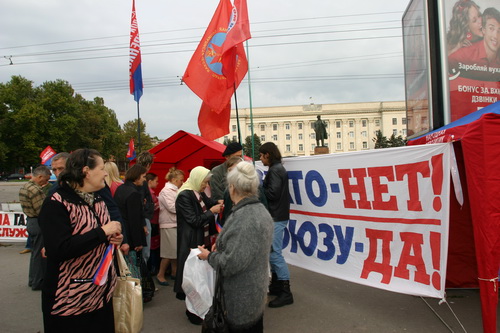 По окончании митинга Наталия Витренко призвала херсонцев активно вступать в ряды прогрессивных социалистов, ряды активных борцов с разрушительным курсом реформ и колонизацией страны.