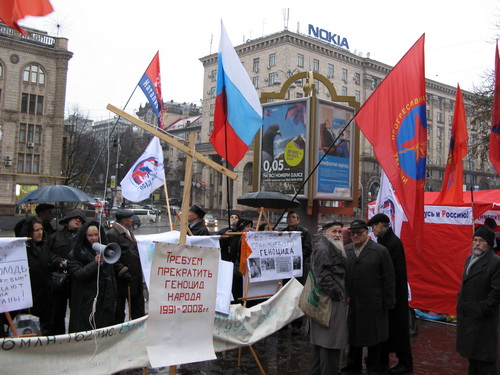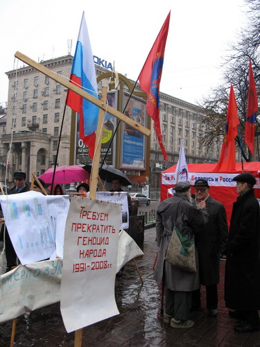Оранжевые во главе с президентом Ющенко, раскручивая тему голодомора – геноцида, хотят скрыть, что они сегодня в Украине своими руками, своей экономической, социальной политикой проводят политику геноцида. Украина за годы независимости потеряла 6 млн. человек и первенствует в Европе по вымиранию населения, детской смертности, наркомании, алкоголизму, распространению СПИДа. По уровню нищеты населения Украина занимает 2-е место после Молдовы. Минимальные пенсии и зарплаты в 3 раза меньше стоимости жизни. Разрушена экономика. А если бы в Украине не развернули разрушительные реформы по рецептам МВФ, то нас бы сегодня было 59, 4 млн. Т.е., правящий режим обязан отвечать за 13,3 млн. жертв в Украине.