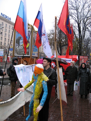22 ноября 2008 г. В Киеве на Крещатике повесили жовто-блакитное чучело – символ оранжевого демократа. Общественная организация ЗУБР, активисты Прогрессивной социалистической партии Украины и партии "Русский Блок" провели акцию протеста в годовщину оранжевого путча и голода 1932-1933 годов.