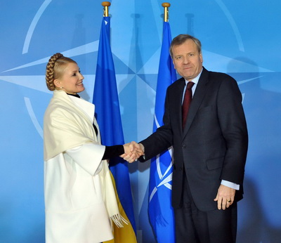 Сейчас же на этом месте стоит фотография премьер-министра Юлии Тимошенко во время визита в штаб-квартиру НАТО 29 января 2008 г.