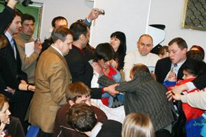 Плодом такой "демократии" стало не только насильственное выдворение инакомыслящих из зала, но и избиение охраной УНИАН журналиста газеты "Предрассветные огни" Виталия Плошкина.
