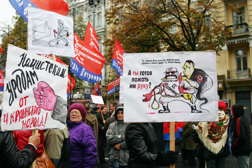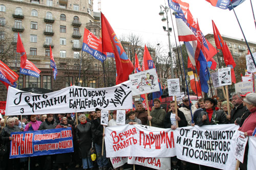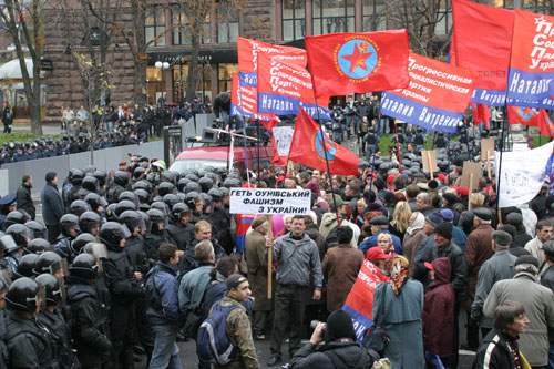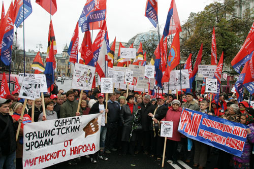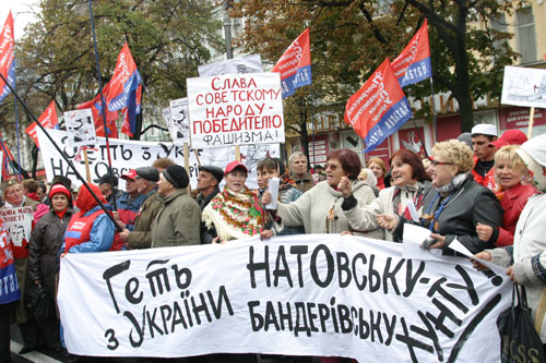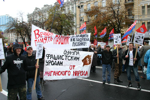 Перед участниками митинга выступила лидеры ПСПУ Наталия ВИТРЕНКО и Владимир Марченко они напомнили киевлянам и гостям столицы о преступлениях совершенных вояками УПА, сотрудничавших с фашистской Германией. Выступающие на митинге обвинили Президента Украины Виктора ЮЩЕНКО в фашизации власти, а его указ о праздновании годовщины УПА еще раз подтверждает данный факт.
