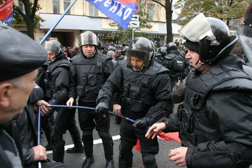 В результате массового, со стороны милиции, нарушения конституционных прав граждан на мирные акции, на свободу перемещения привели к столкновениям милиции с протестующими. Противоправные действия представителей правоохранительных органов еще раз свидетельствуют о том что "оранжевый" режим в Украине все больше скатывается в болото коричневой чумы, когда политические репрессии против политических оппонентов становятся последним аргументом в борьбе с инакомыслием.